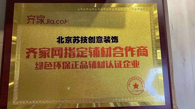 合作共贏-蘇技裝飾獲齊家網(wǎng)表彰。