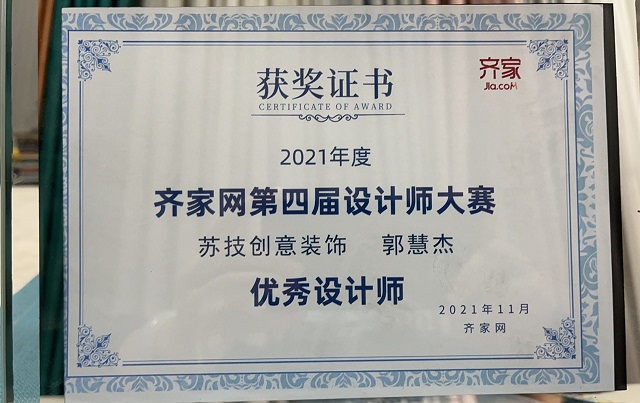 蘇技創(chuàng)意裝飾青年設(shè)計師再獲嘉譽(yù),雙雙入圍齊家網(wǎng)全國設(shè)計大賽并獲優(yōu)秀獎。