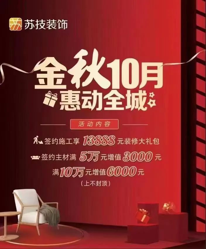 蘇技創(chuàng)意裝飾十一國(guó)慶節(jié)期間為您送上一波特惠活動(dòng)。